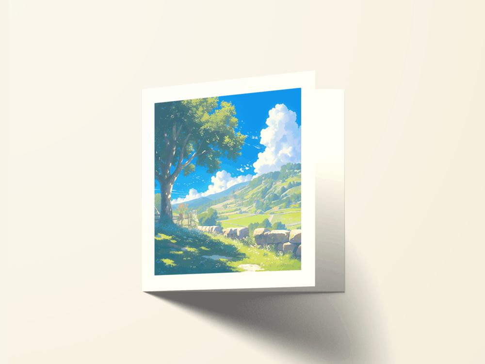 Carte carrée pliée en 2, imprimée couleur.