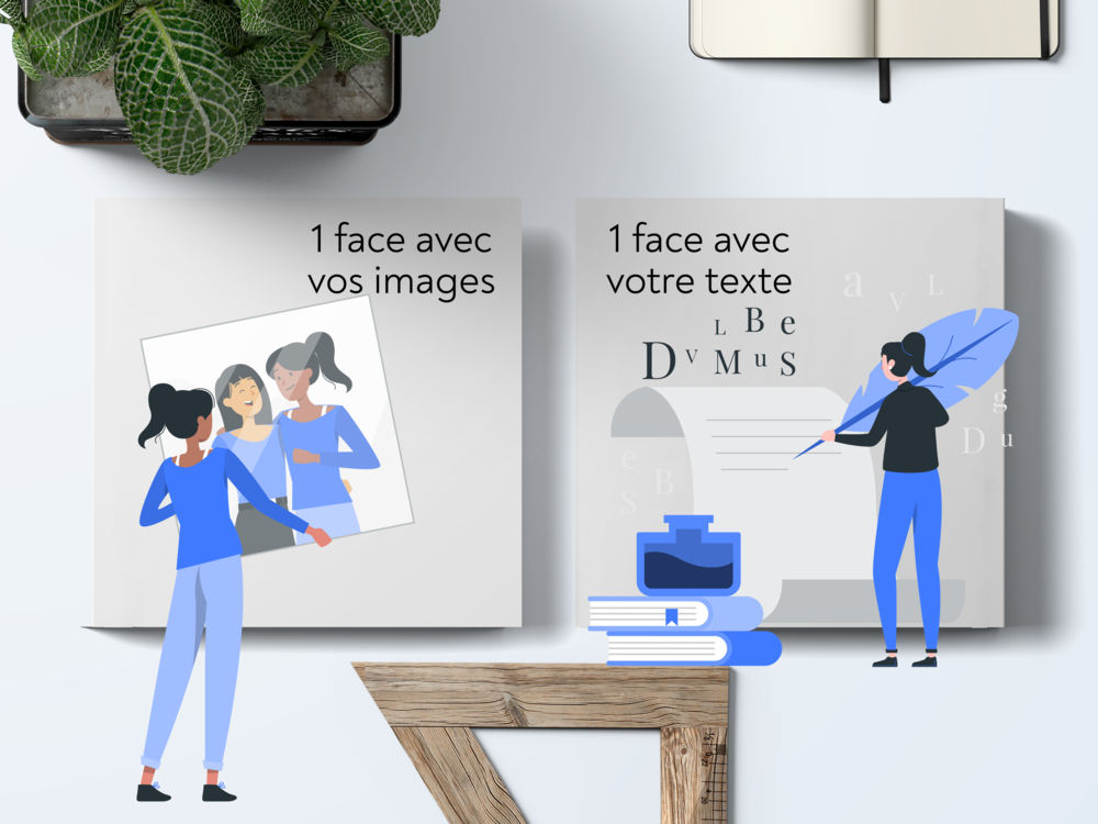 Carte carrée plate, sans pliage. Imprimée couleur recto et verso, sur carte graphique 350g