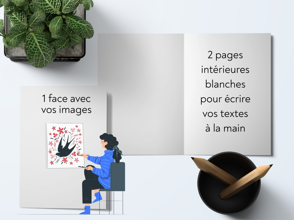 Personnalisation de la 1ère page et des 2 pages intérieures. La dernière page reste blanche.