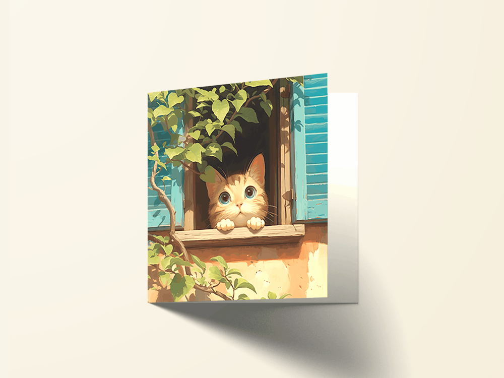 Carte carrée pliée en 2, imprimée couleur.