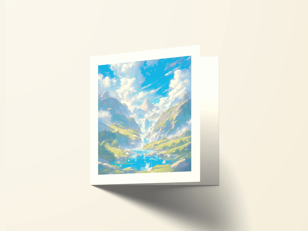 Carte carrée pliée en 2, imprimée couleur.